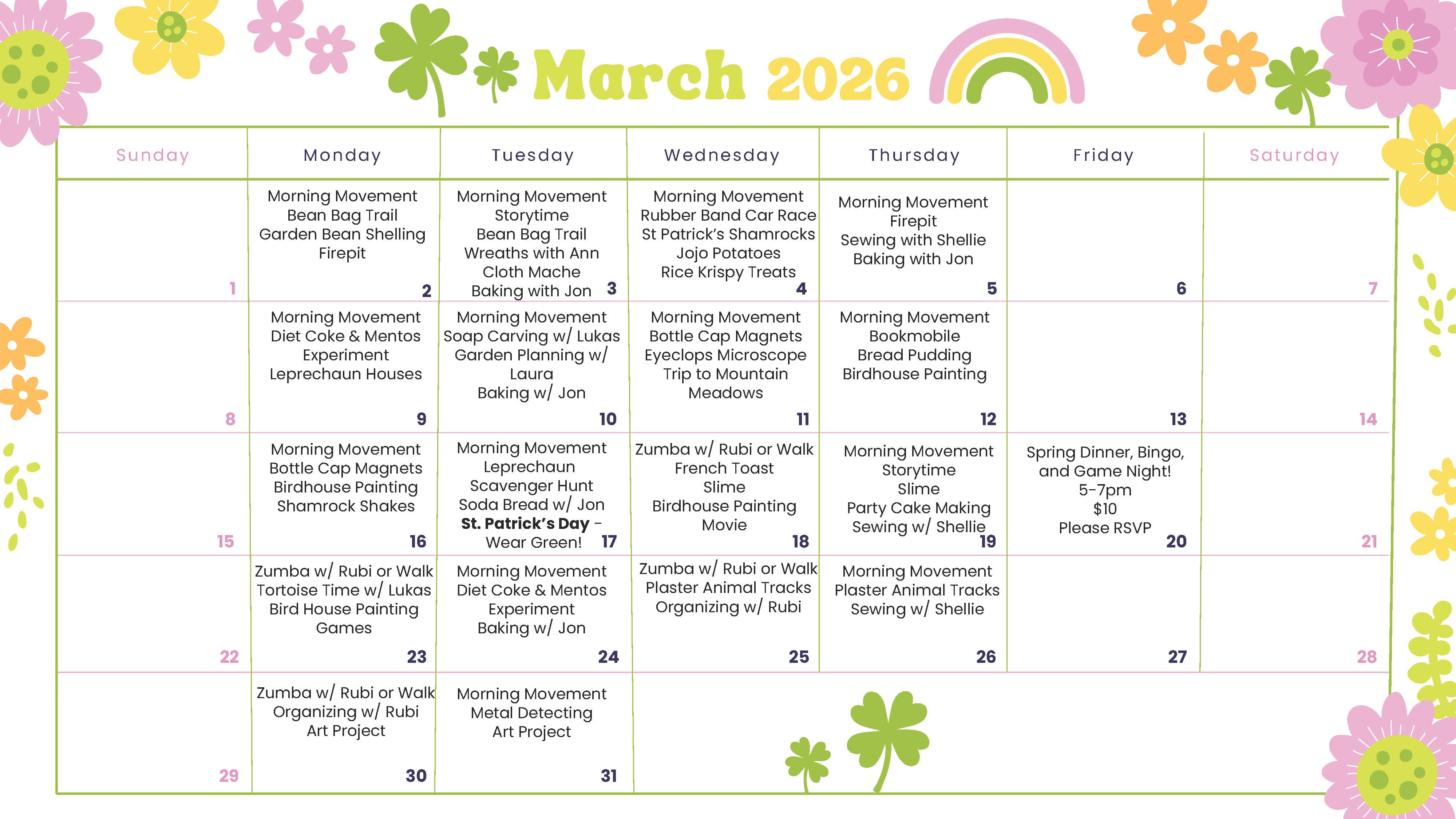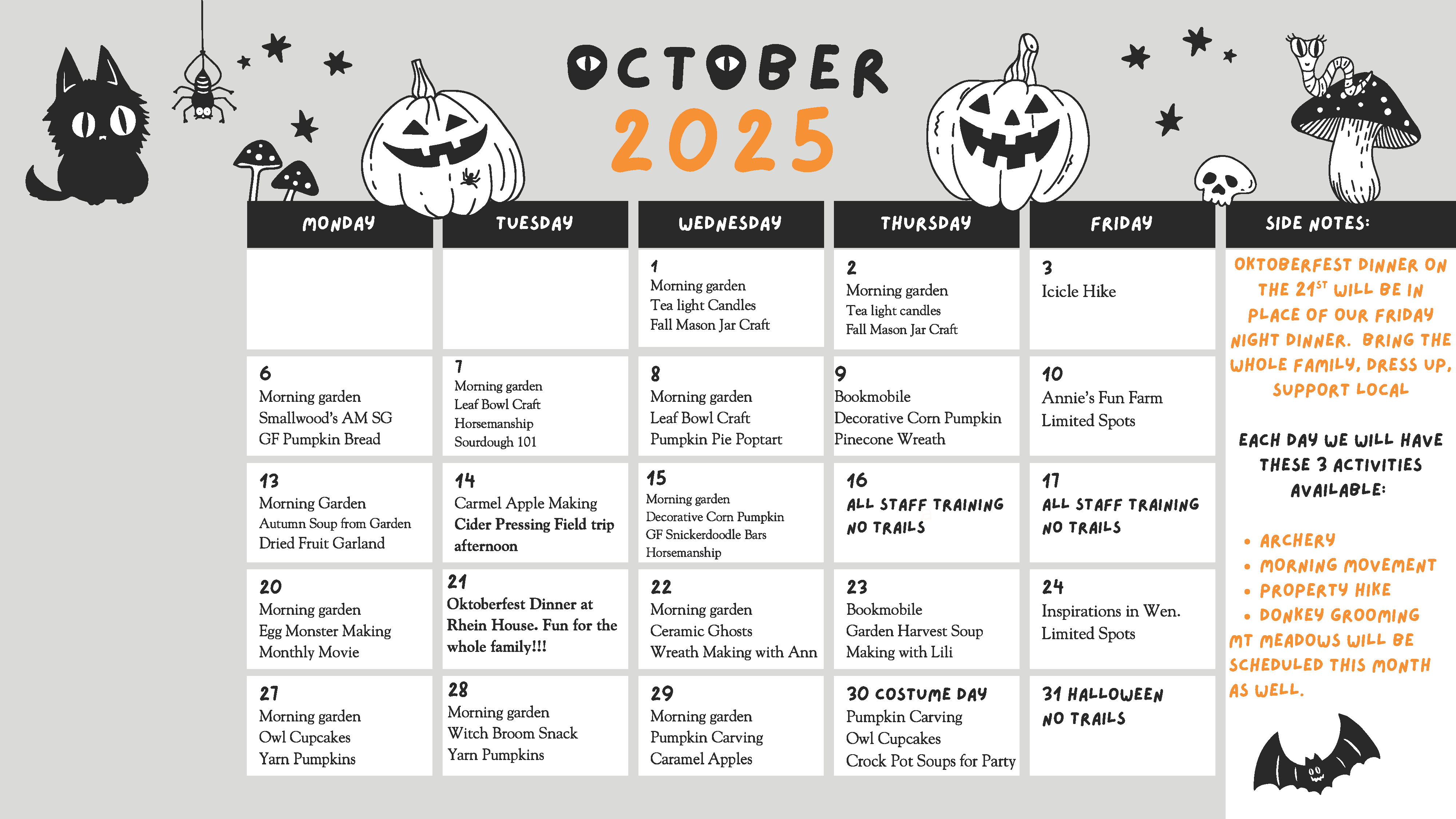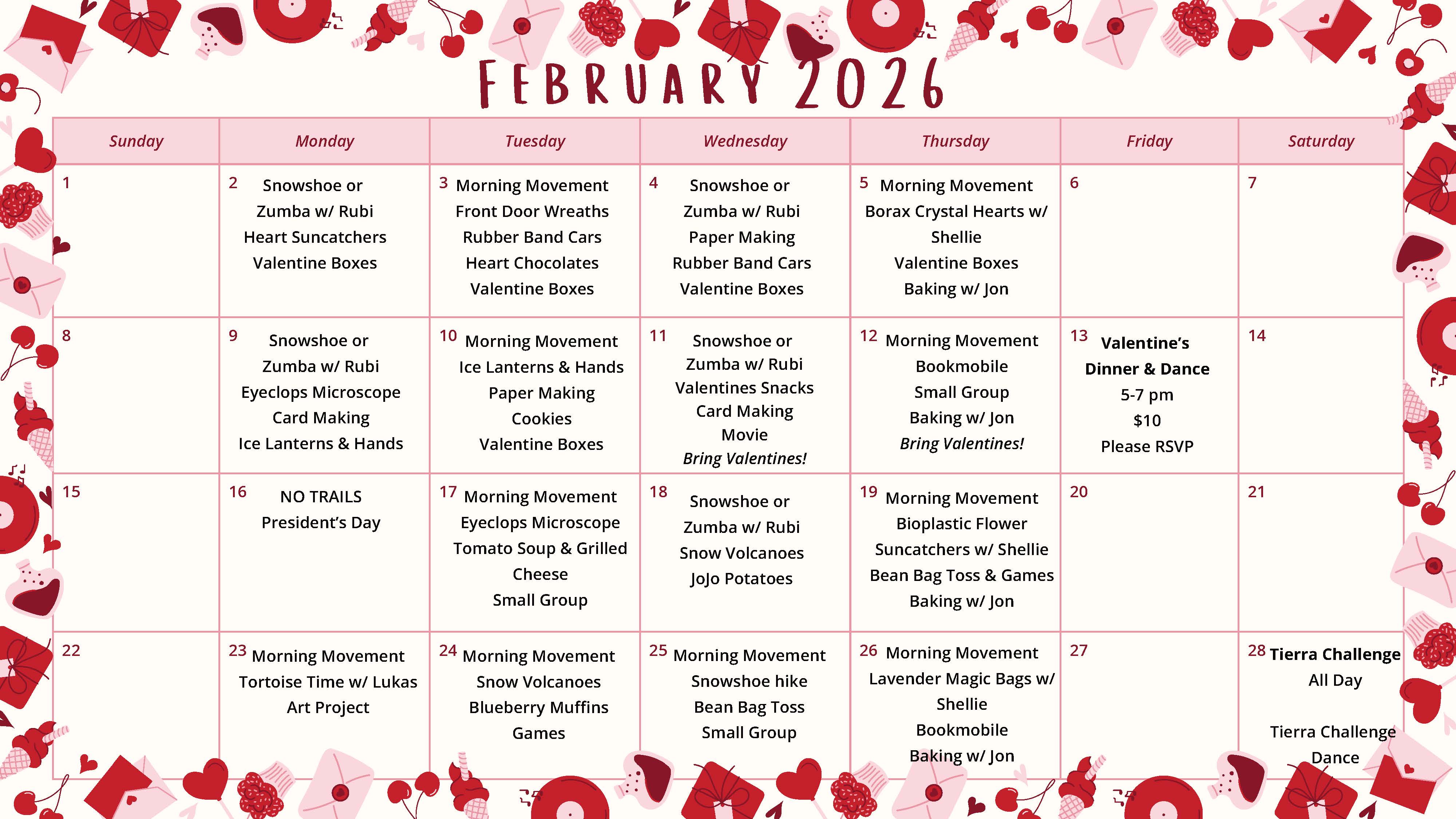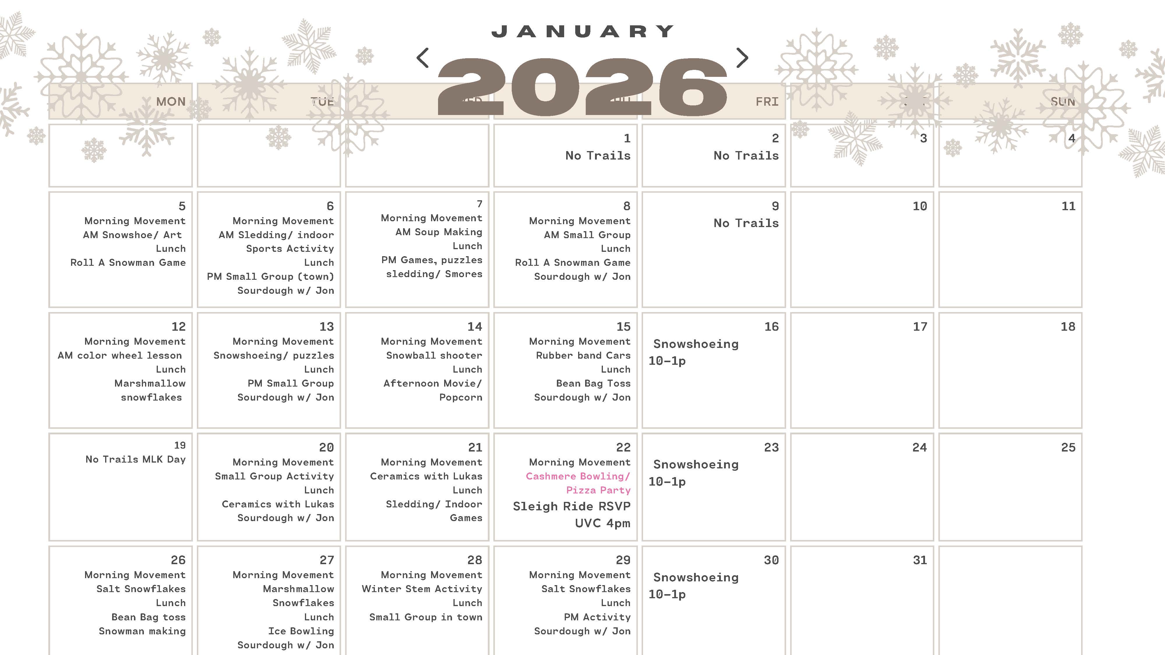Trails runs Monday-Thursday from 10:00 am until 3:00 pm and small group activities on Fridays.